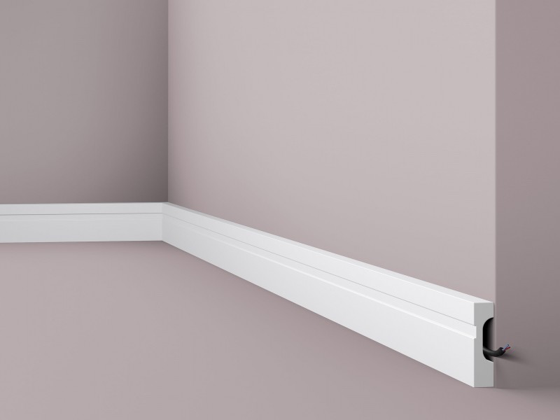 Klasyczna i minimalistyczna listwa przypodłogowa, pełniąca rolę dekoracyjną i funkcjonalną. Tworzy dekor wewnętrzny i pozwala na efektywne obramowania i ramy oraz ciekawe zagospodarowanie ścian, na których brakuje silnego akcentu. Jej unikalny profil ozdobny stwarza różnorodne i szerokie możliwości aranżacyjne, a solidność wykonania daje gwarancję trwałości przez wiele lat. Ponadto listwa bezproblemowo wpasowuje się w klimat zarówno nowoczesnych, jak i tradycyjnych przestrzeni mieszkalnych.