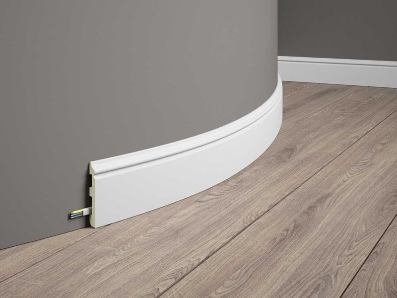 Bardzo popularny wzór klasycznej białej listwy przypodłogowej elastycznej.